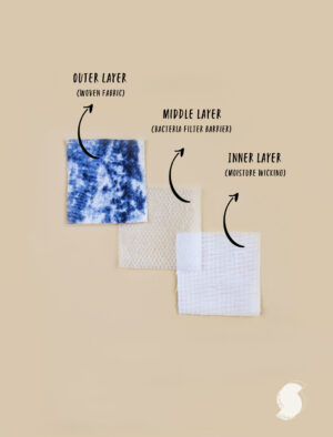 Our re-usable, triple-layered face mask is designed for protection, comfort, and style. The middle layer works to block harmful bacteria while the inner wicking fabric gets rid of moisture. The outer woven fabric is intended to turn heads, receive compliments, and adapt to your everyday activity.